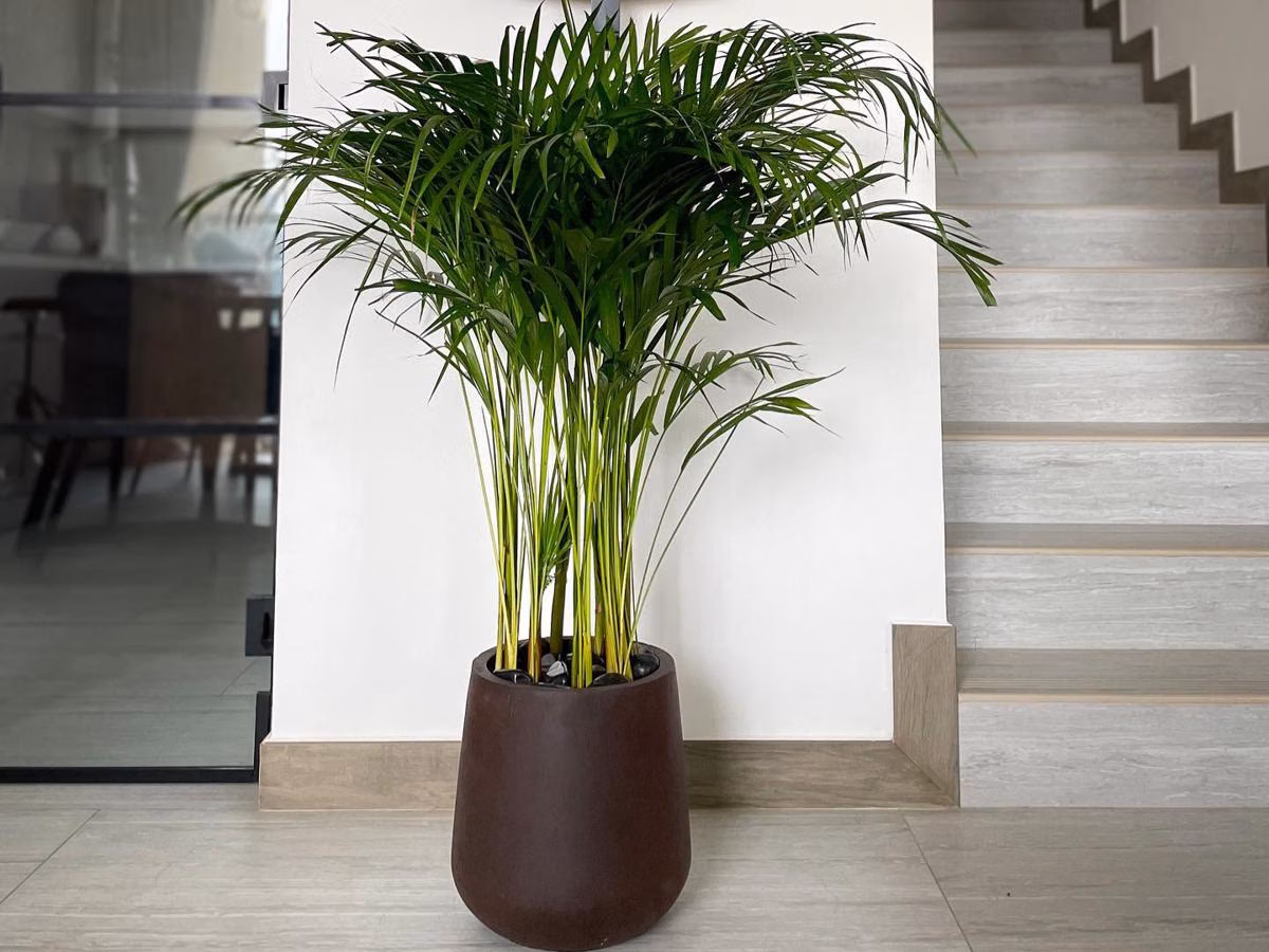 Sirih gading memiliki daun hijau cerah yang mampu menyerap panas dan meningkatkan kelembapan. Tanaman ini cocok diletakkan di dalam ruangan maupun digantung dekat jendela. - Palem Kuning